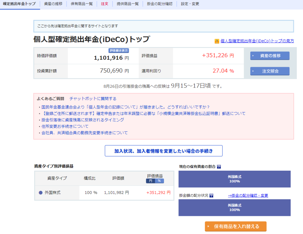 自分積み立て年金で税金対策にもなるということでiDeco(個人型確定拠出年金)に2018年12月より加入しています。